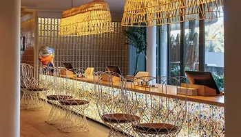 El Me Sitges Terramar Hotel frente a la playa se sitúa en una zona tranquila de Sitges. Desde 1932 el hotel espera a sus huéspedes en el barrio Costa de Sitges, ofreciendo 213 habitaciones con aire acondicionado y un bar en agua.