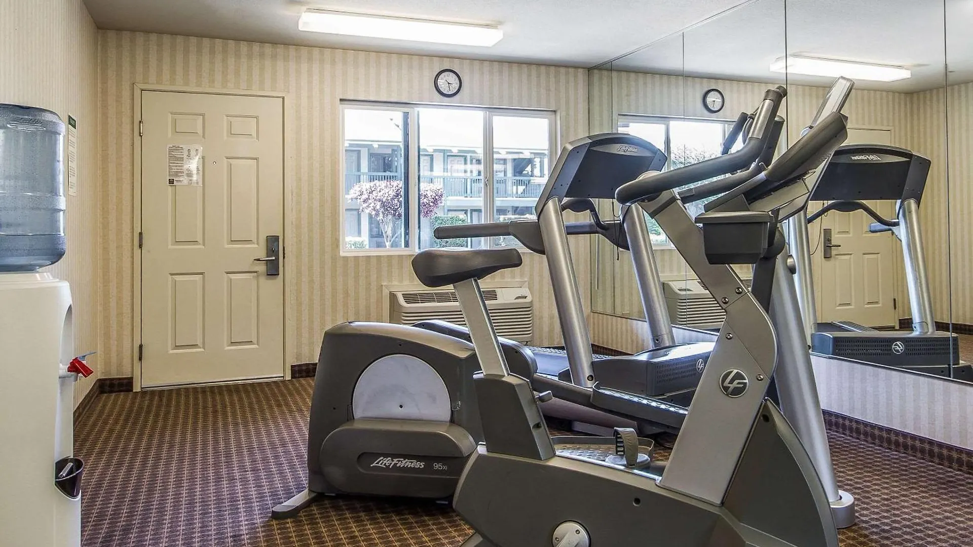 Guests can work out in an exercise room during their stay.